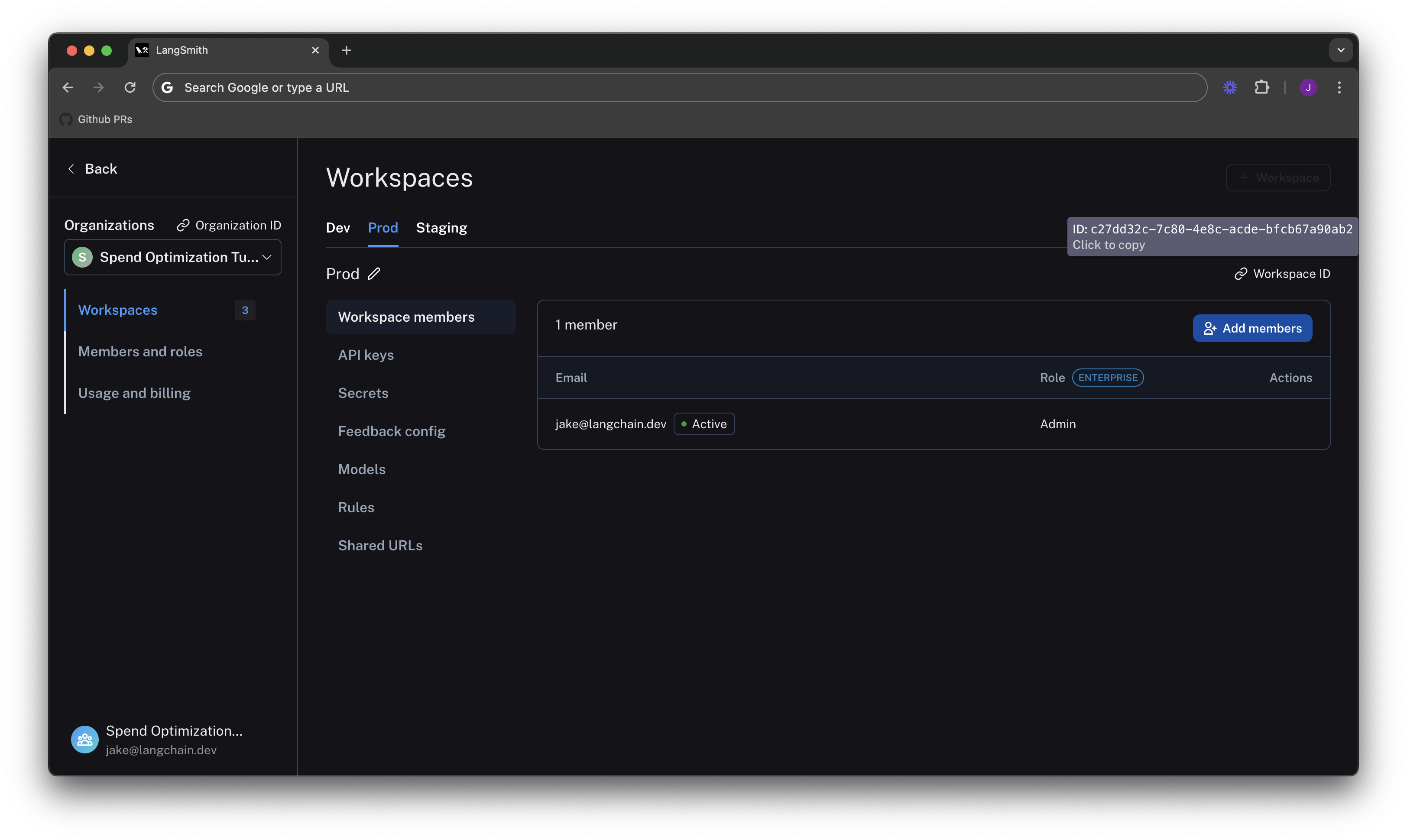 LangSmith Traces usage is measured per workspace, because workspaces often represent development environments (as in our example), or teams within an organization. As a LangSmith administrator, we want to understand spend granularly per each of these units. In this case where we just want to cut spend, we can focus on the environment responsible for the majority of costs first for the greatest savings.